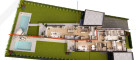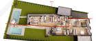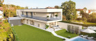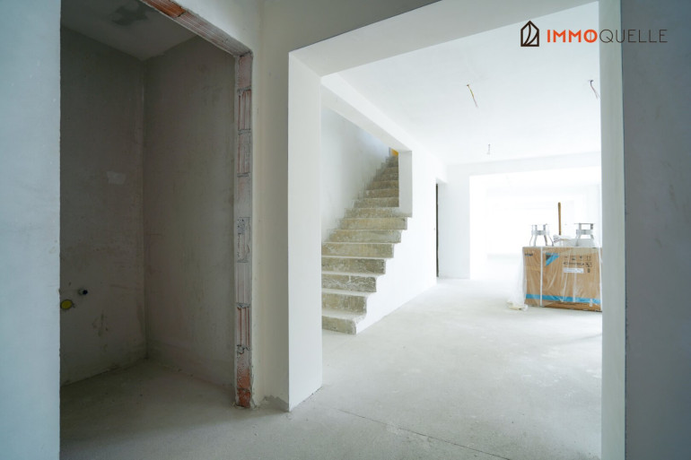 Der Eingangsbereich öffnet sich zu einem weitläufigen Erdgeschoss, das offen gestaltet ist und vielfäl- tige Möglichkeiten für Küche, Essplatz und Wohnzimmer bietet. Große Fensterflächen lassen viel Licht herein und führen hinaus auf die Terrasse – sonnig, geschützt und mit Blick in den Garten, wo der Pool bereits baulich vorbereitet ist.