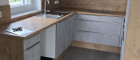 Böden, Fliesen und einer sehr schönen DAN-Einbauküche.
