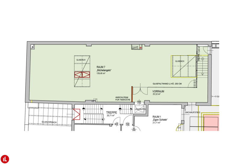 * 139,48 m² Bürofläche + 25,52 m² Vorraum