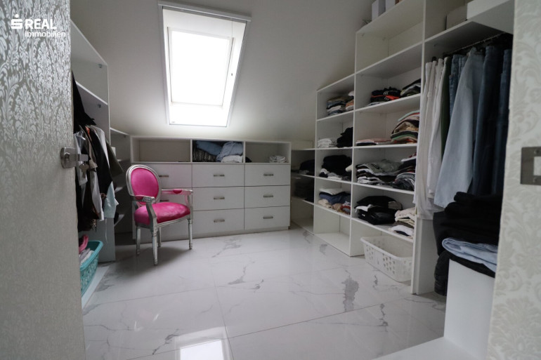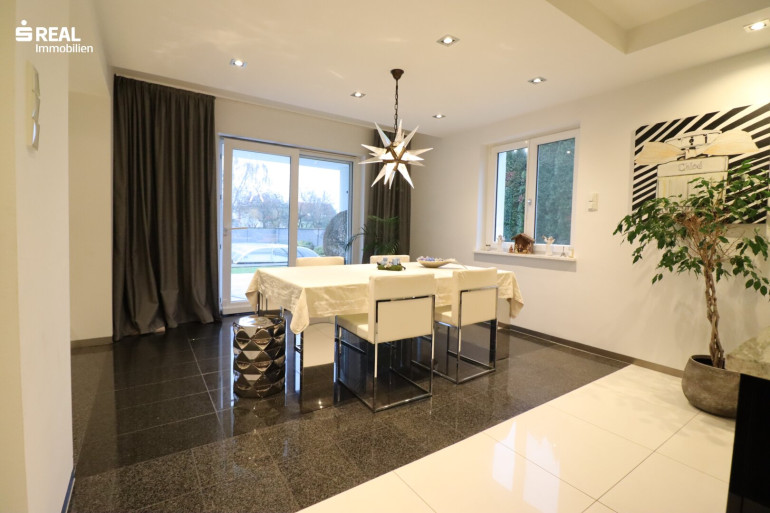 Das Einfamilienhaus zeichnet sich besonders durch eine durchdachte Raumaufteilung, außergewöhnliche Elemente in Holzoptik, Marmor und Glas aus, die eine einzigartige und ansprechende Atmosphäre schaffen.