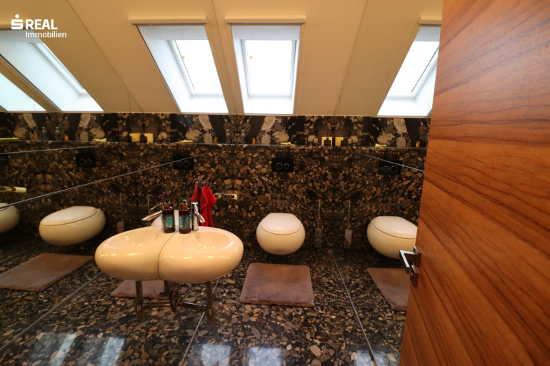 + luxuriöses Badezimmer mit geräumiger Walk-In Dusche, riesiger Badewanne und zwei Waschbecken
