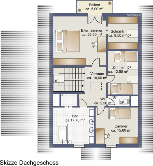 + Schlafzimmer mit einer Terrasse (Richtung Garten)