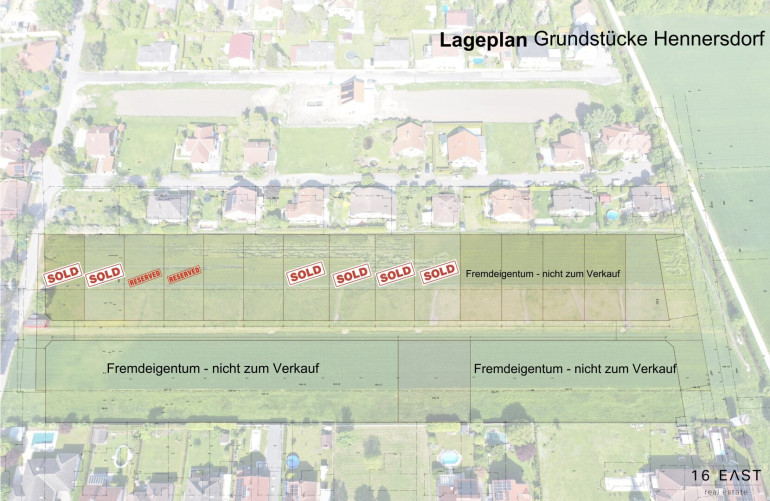Zum Verkauf steht ein Grundstück in Hennersdorf mit einer Fläche von ca. 649 m2. Das Grundstück ist vollkommen eben und frei von Bäumen, wodurch es sich hervorragend für den Bau eines Einfamilienhauses oder eines Doppelhauses eignet. Die Flächenwidmung des Grundstücks ist als Baulandwohnen ausgewiesen, jedoch auf die Bebauung von zwei Wohneinheiten beschränkt. Es besteht die Möglichkeit, 35 % der Fläche in offener Bauweise in der Bauklasse 1, bis zu 7 Metern zu bebauen.