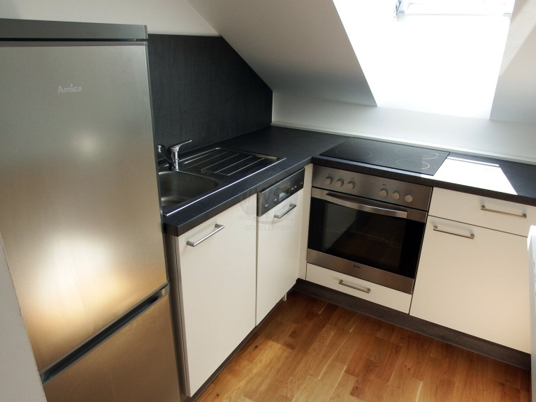 Diese helle und freundliche Dachgeschosswohnung umfasst 82 m² und liegt im Zentrum von Raab.