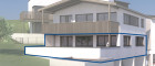 Das Projekt gliedert sich in zwei Baukörper und insgesamt fünf Ebenen, um die schöne Hanglange hinsichtlich Besonnung und Aussicht voll auszunützen.
