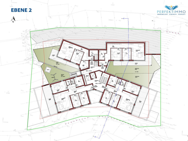 Auf Ebene 2 liegen die Wohnungen Top 3, Top 4, Top 5 und Top 6. Im Westen befindet sich ein Spielplatz, der allen Bewohnern des Hauses zur Verfügung steht.