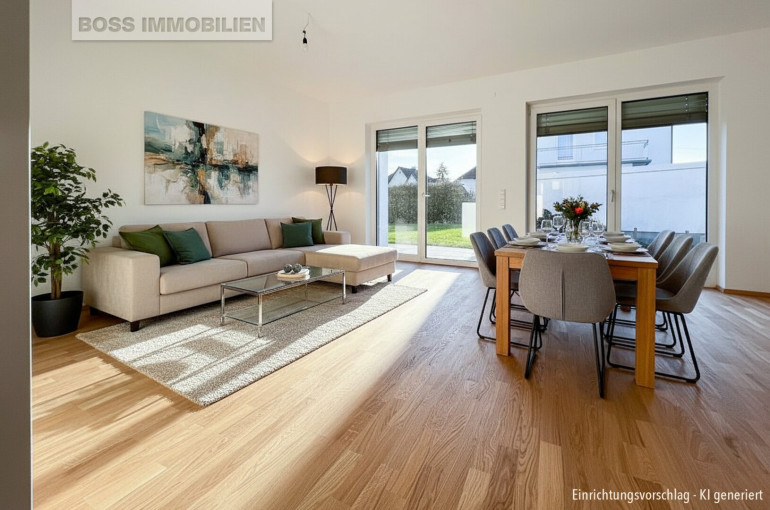 Die südwestliche Ausrichtung des Hauses ermöglicht Ihnen eine ideale Ausnutzung der Sonnenstunden. Vom Wohnbereich gelangen sie auf die Terrasse und in den Garten, welche zum Verweilen und Genießen der Natur einladen. Der Garten selbst wird zur grünen Oase, in der Kinder spielen können und Erwachsene die Ruhe genießen.