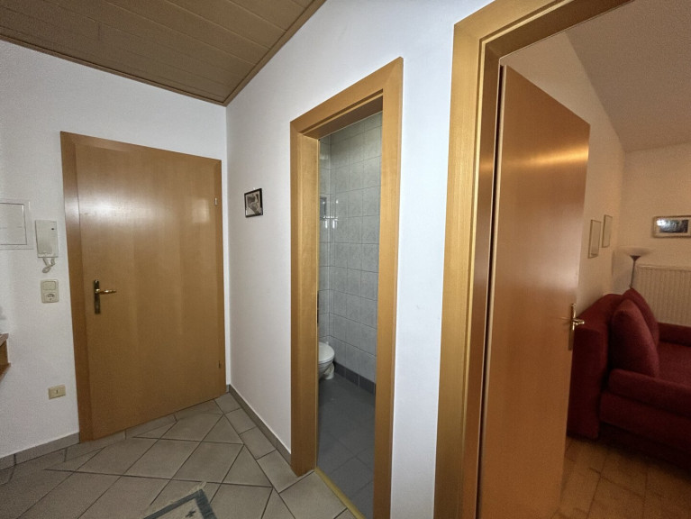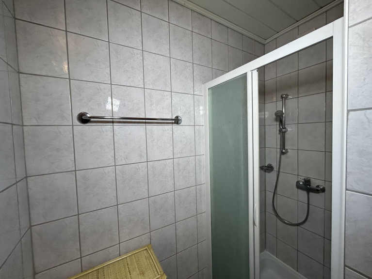 Das Schlafzimmer bietet genügend Raum für erholsame Nächte, und ein geräumiger Schrankraum schafft optimale Stauraummöglichkeiten. Das Badezimmer mit Dusche sorgt für Frische und Komfort, während das separate WC eine zusätzliche Annehmlichkeit darstellt.