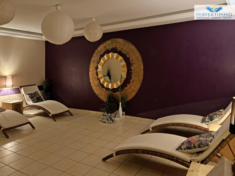 Die Anlage beeindruckt mit einer Orangerie, die einen besonderen Charme verleiht, sowie einer Sauna, zwei Behandlungsräumen und einem Fitnessraum für entspannte Wellnessmomente. Das Hallenbad, Dampfbad und Solarium bieten weitere Möglichkeiten zur Erholung. Zwei Ruheräume laden zum Verweilen ein, und ein gut sortierter Weinkeller rundet das Angebot ab.