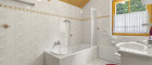 - Badezimmer mit Toilette und Badewanne