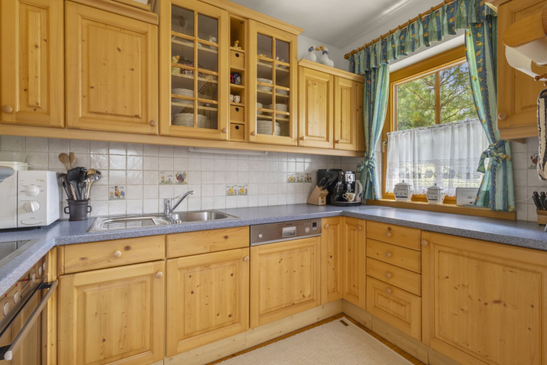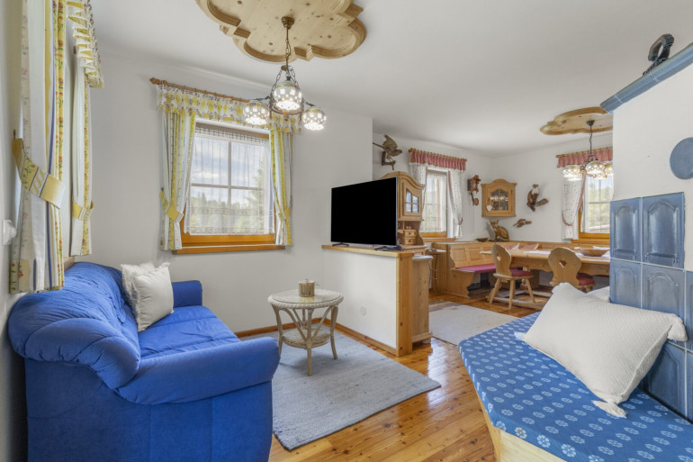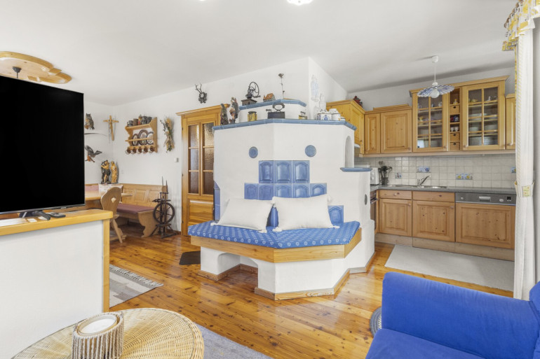 - Offene Küche mit großem Wohnraum und Kachelofen mit gemütlicher Sitzbank