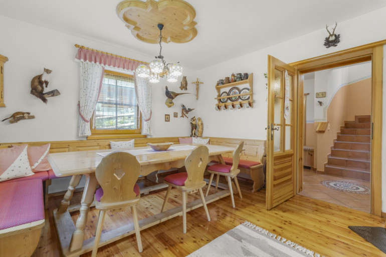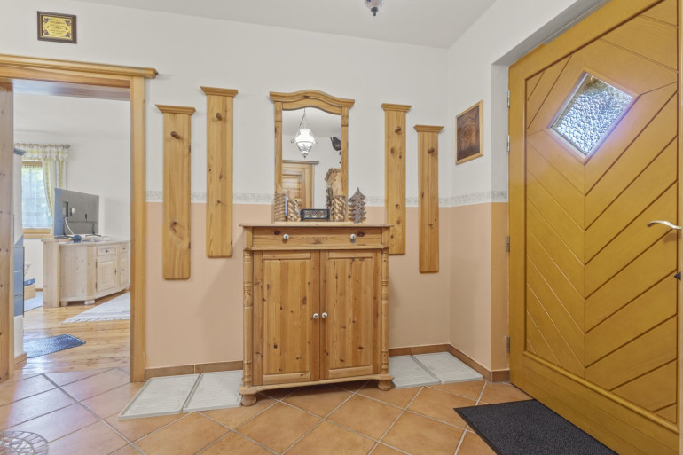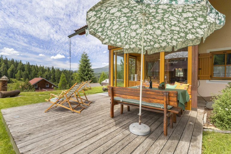 Das Ferienhaus wurde 2009 errichtet und liegt in sonniger Südlage. Esbietet von der Terrasse und vom lichtdurchflutetem Wintergarten aus einen atemberaubenden Blick auf die umliegenden Berge.