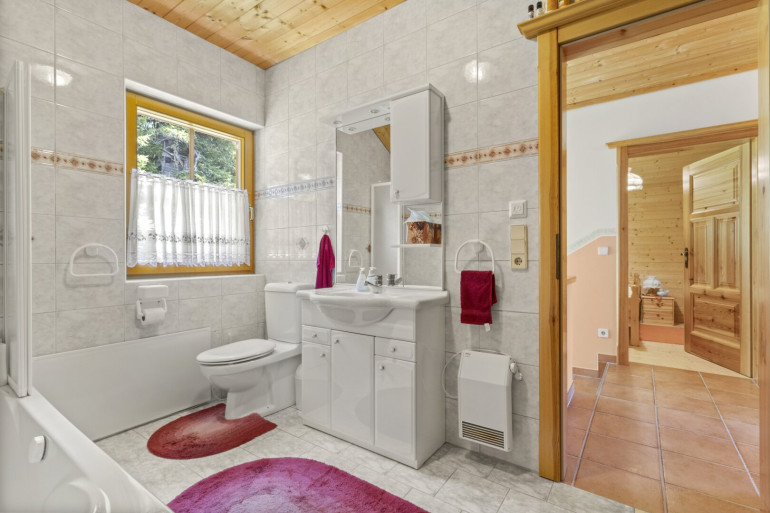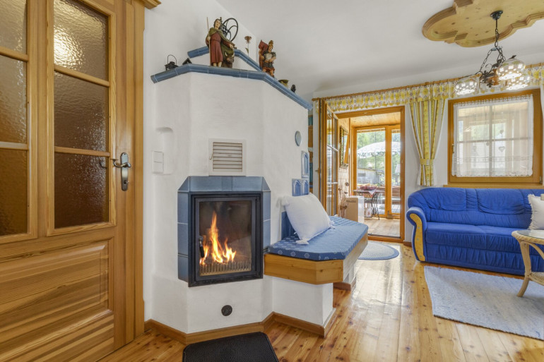 Weiters gibt es in beiden Bädern Infrarotheizungen, im Badezimmer im OG eine Fußbodenheizung, sowie einen heimeligen Kachelofen im Ess-Wohnbereich.