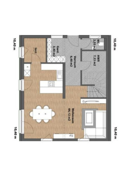 Im Erdgeschoss beteten Sie den Vorraum der genug Platz für Garderobe und auch Stauraum bietet. Es bindet sich ein Gäste WC mit Handwaschbecken im Erdgeschoss. Die helle und geräumige Wohnküche hat einen Ausgang auf die Terrasse und zum Garten. Des weiteren ist ein Abstellraum bzw eine Speis an die Küche angeschlossen.