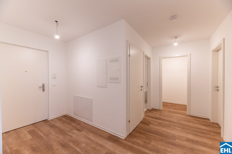 Den zukünftigen Smart Quadrat-Bewohnern stehen zudem eine Vielzahl an Gemeinschaftsräumen, wie z.B. Fitnessräume, Shared Offices, Indoorspielplätze sowie ein Spielplatz im Innenhof, Washing-Lounges, eine Fahrradwerkstatt, Hobby- & Freizeiträume sowie Stellplätze in der hauseigenen Garage zur Verfügung. Ein Nahversorger und eine Bäckerei mit Caféhaus befinden sich ebenfalls direkt im Wohnkomplex. Weitere Geschäfte des täglichen Bedarfs, Ärzte, Schulen und Gastronomielokale sind fußläufig erreichbar. Auch eine große Parkanlage wird derzeit auf dem Nachbargrundstück realisiert. Ein perfekter Mix aus urbanem Leben und privater Erholung!