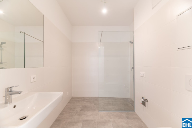Fliesen, Parkett, Fußbodenheizung, Einbauküche, Wohnküche / offene Küche, Personenaufzug, Westbalkon, Dusche
