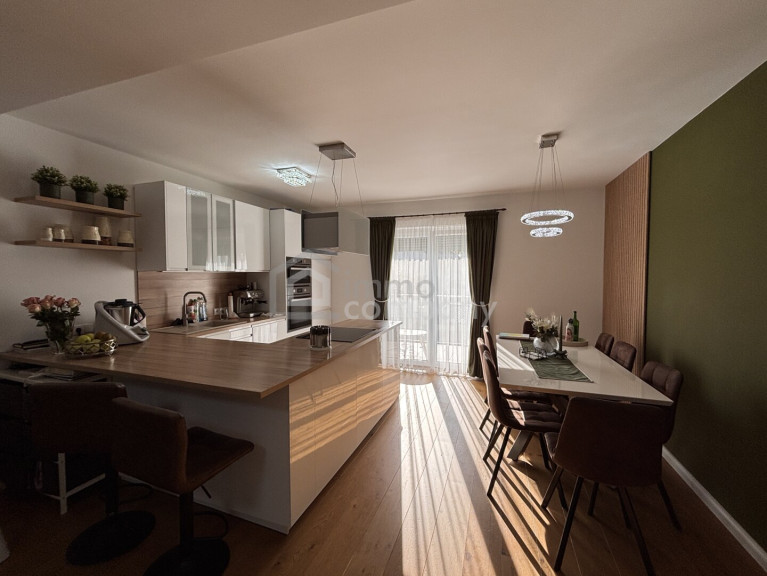 - Wohnküche und Essbereich mit Zugang zum Balkon