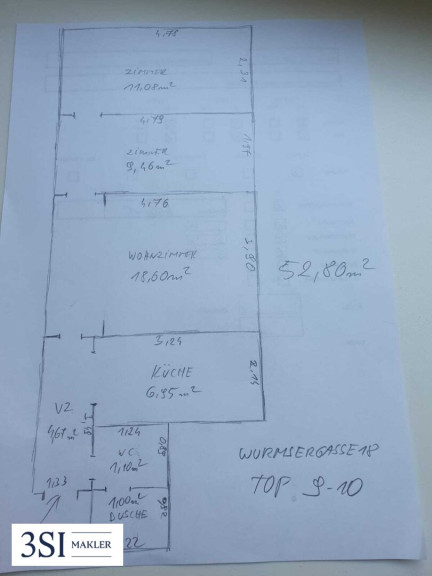Bei der gegenständlichen Einheit handelt es um eine sanierungsbedürftige 2-3 Zimmer Altbauwohnung mit knapp 52m² Wohnfläche, im 1. Liftstock: