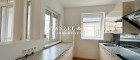 Die offene moderne Küche ist durch eine Durchreiche und Schiebetür, mit dem Wohnesszimmer verbunden.