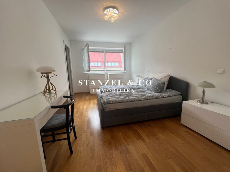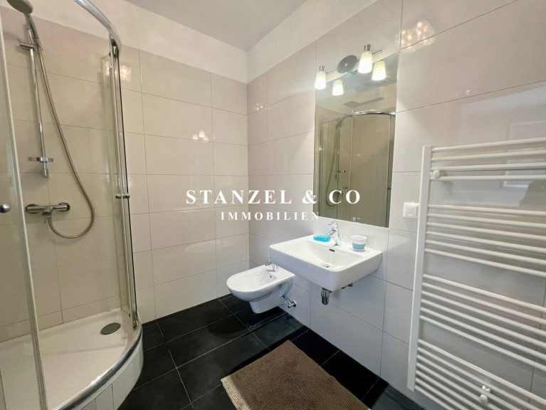 Die 3 Schlafzimmer sind zentral vom Vorzimmer aus zu begehen und südwestseitig orientiert. Das 18m² große Schlafzimmer ist durch eine Schiebetüre mit dem anschließenden Badezimmer mit Fenster, Dusche, Bidet, Waschbecken, Handtuchtrockner und Spiegel verbunden.