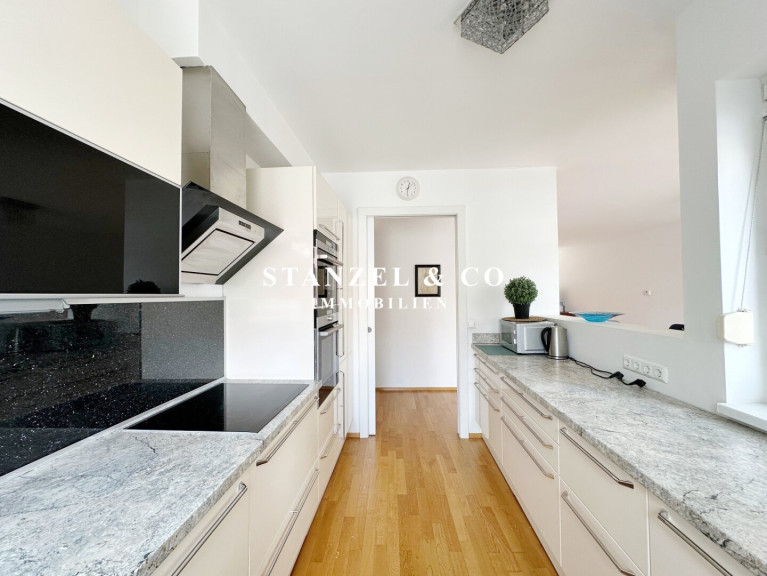 Vom 20m² großen Vorzimmer gelangt man durch eine raumhohe schöne Glastüre in das sehr große Wohnesszimmer mit anschließender 10,28m² großer Innenhofterrasse inkl. Loggia und offener Küche. Die schöne 10m² große Außenfläche ist zum Teil überdacht.