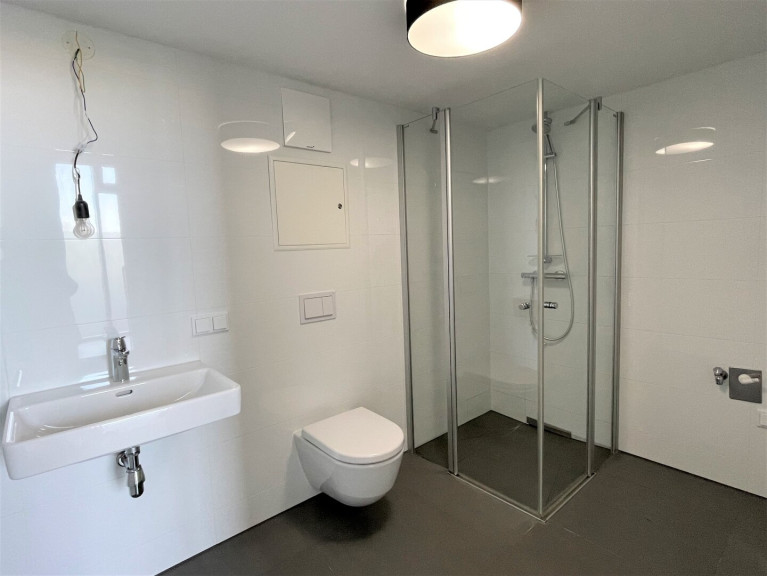 Parkett, Fliesen, Fernwärme, Fußbodenheizung, Einbauküche, Personenaufzug, Dusche