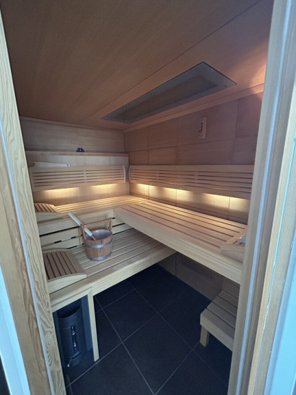Fliesen, Parkett, Gas, Heizofen, Kamin, Zentralheizung, Einbauküche, Bad mit Fenster, Badewanne, Dusche, Kabel/Satelliten-TV, Garage, Parkplatz, Alarmanlage, Sauna, Sicherheitskamera, Wasch/Trockenraum