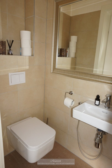 Neben einer kleinen Abstellnische ist darüber hinaus auch ein Kellerabteil mit ca. 1,5m2 zugehörig. Die Fenster sind aus Kunststoff mit solarbetriebenen Außenjalousien, eine Klimaanlage ist vorhanden und beheizt wird mit einer Gasetagenheizung.