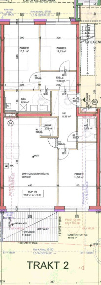 Die Wohnung verfügt über eine Wohnfläche von ca. 97,72m², zusätzlich ca. 49,60m² Gartenfläche und einer Terrasse mit 11,63m².