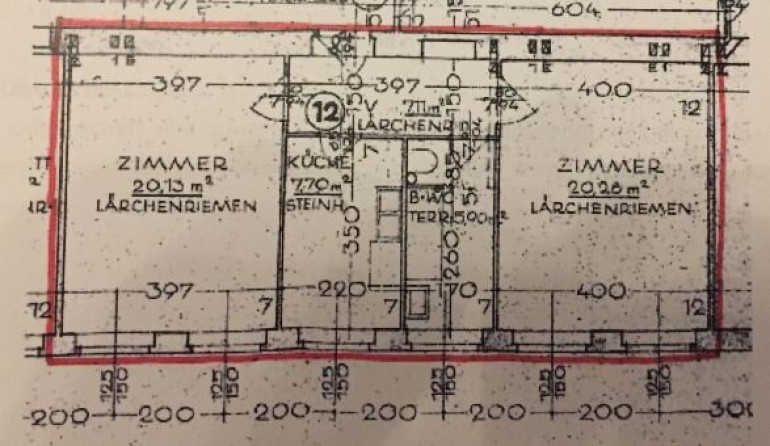Zwei in etwa gleich große Zimmer (ca. 20m²), eine Küche und ein geräumiges Bad mit WC mit Fenster.