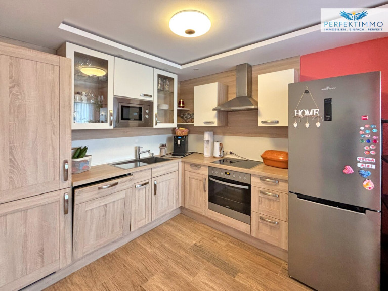 Beim Betreten der Wohnung werden Sie von liebevoll gestalteten, abgehängten Decken mit Einbauspots begrüßt, die für eine angenehme Atmosphäre sorgen. Die verglaste Loggia lädt zu gemütlichen Mahlzeiten ein und bietet einen freundlichen Essplatz, der das ganze Jahr über genutzt werden kann.
