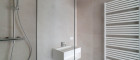 - Badezimmer mit Walk-Inn Dusche und Waschbecken