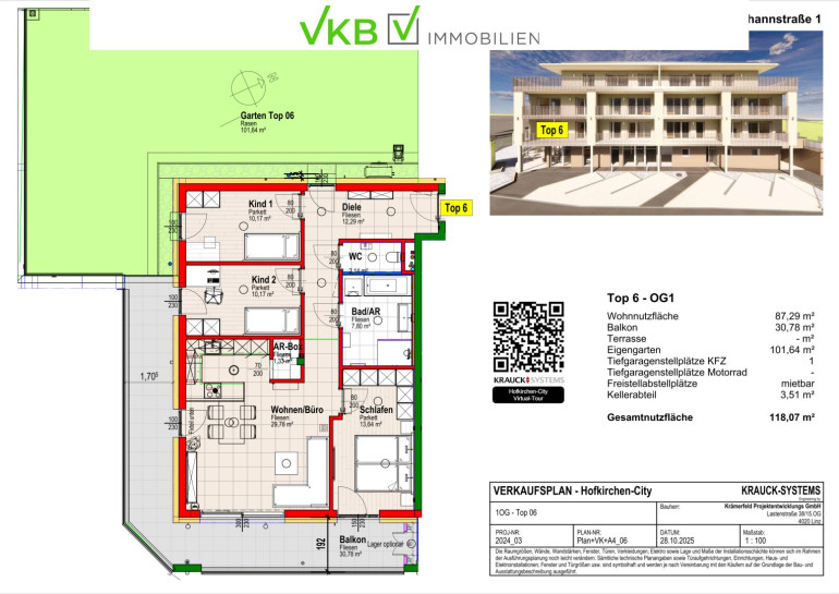 Über die „Virtuelle Tour“ https://krauck-systems.com/Projekte/Hofkirchen-City/Virtual-Tour/ und Informationen auf der Homepage unter „News“ https://kraemerfeld.at/news/ sind stets aktuelle Informationen zum Bauzustand abrufbar.