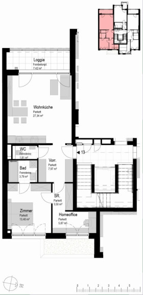 - TOP 13: ca. 63,68 m² 2-Zimmer-Wohnung mit 7,42 m² Loggia