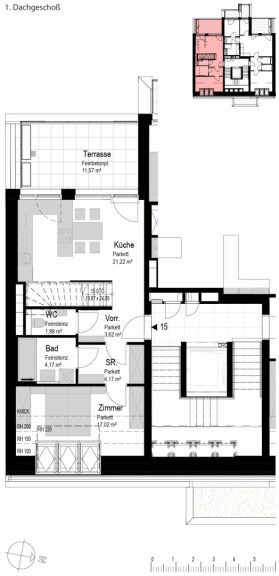 - Top 15: ca. 121,18 m² 4-Zimmer-Maisonette-Wohnung mit 45 m² Terrasse