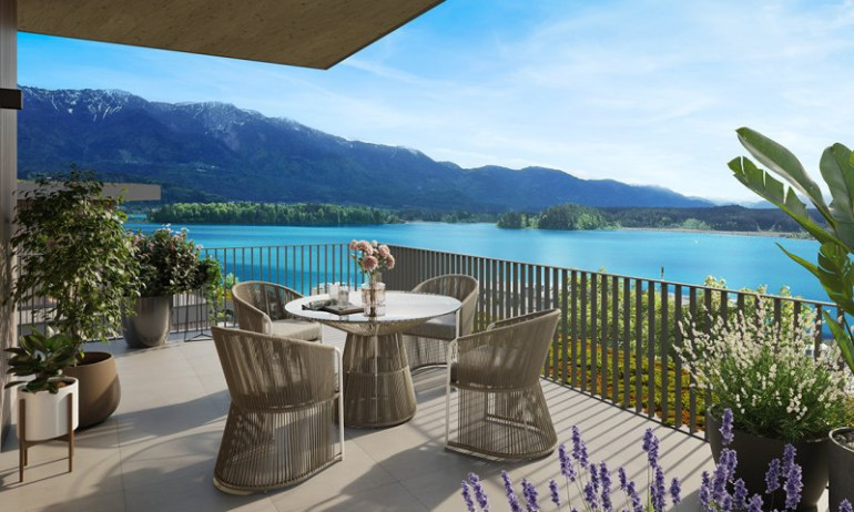 Jede dieser exklusiven Seeblickwohnungen hat eine großzügige Terrasse und einen wunderbaren Blick auf das karibische Wasser des Faaker Sees.
