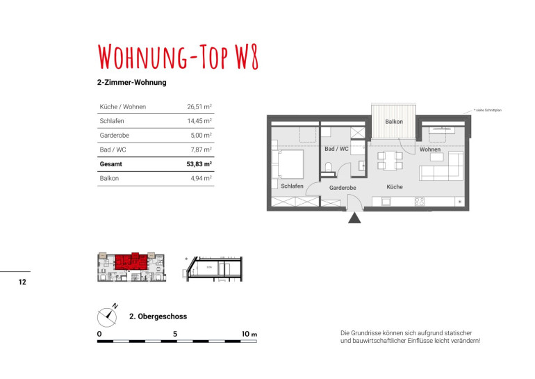 2-Zimmer-Wohnung W8 im 2.OG mit Balkon