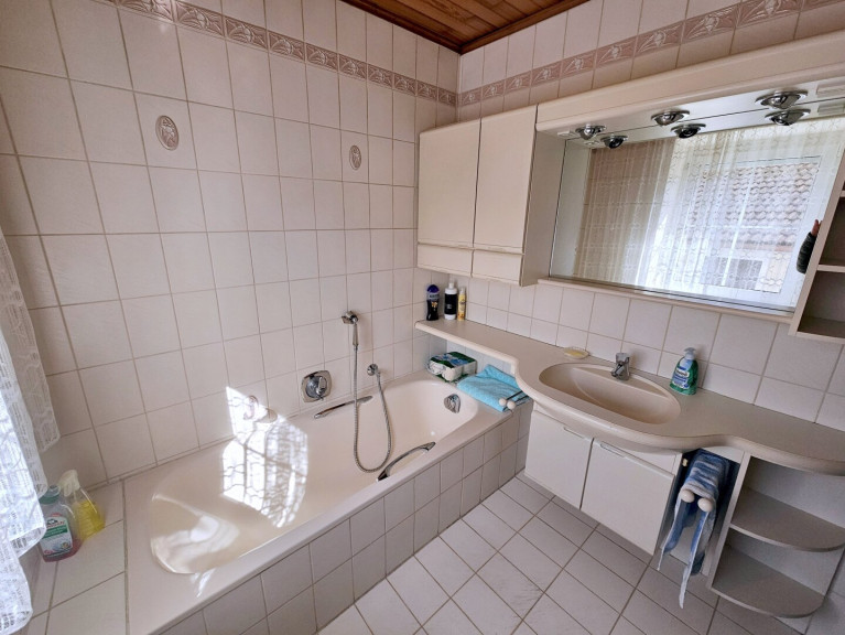 Das Haus befindet sich in einer gepflegten Wohngegend und besticht durch sein attraktives Äußeres und den ebenen Garten. Das Massivhaus ist in einem guten Zustand und wurde stets sorgfältig gepflegt. Schon beim Betreten des Hauses werden Sie von einer warmen und einladenden Atmosphäre empfangen.