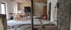 Der ehemalige großer Aufenthaltsraum mit Ausgang auf die Terrasse und die 6 kleinen Schlafzimmer mit Badezimmern und WC wurden auch bereits großteils entkernt.
