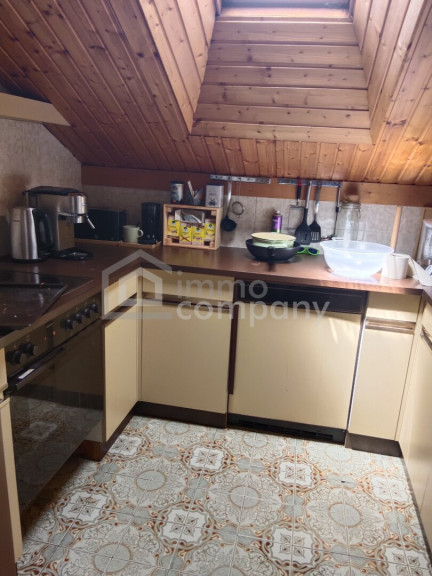Weiter gehts ins Obergeschoss, dieses können Sie noch bewohnen. Hier befinden sich, neben dem großzügigen Schlafzimmer mit Nebenraum, eine kleine Küche, ein Badezimmer mit WC, ein Abstellraum und zwei ehemalige kleine Schlafzimmer. Süd- und nordseitig erwartet Sie ein Balkon.