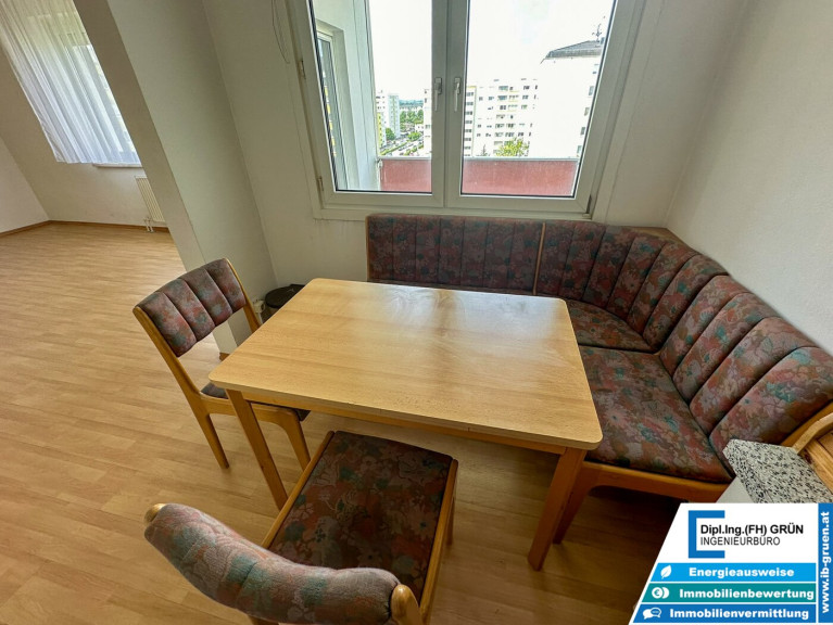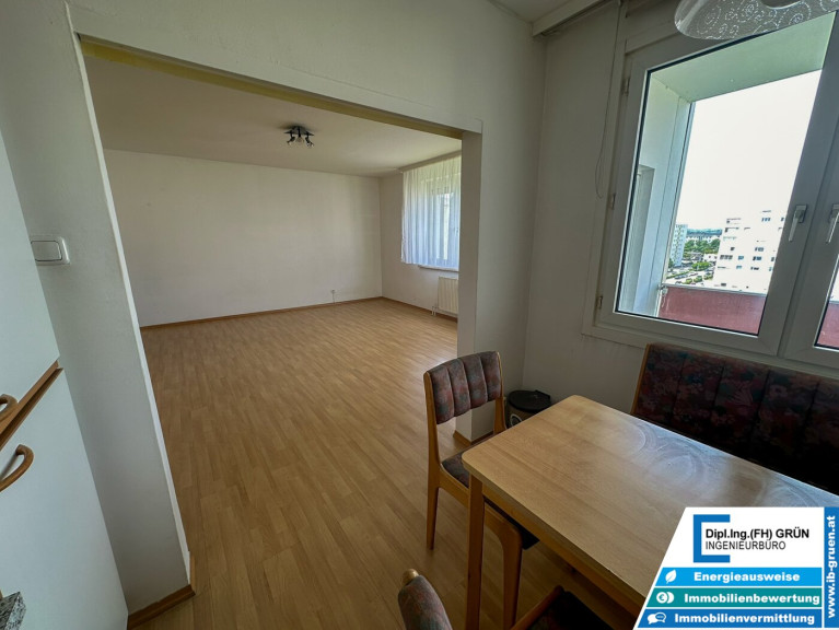 Die Wohnung befindet sich im 7. Stock des Wohnhauses. Ein Aufzug sorgt jedoch für ein bequemes Erreichen, wodurch das Objekt auch optimal für ältere Menschen wäre.