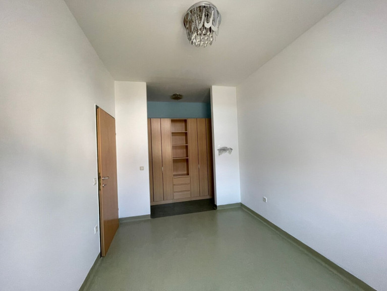 Das Badezimmer ist modern ausgestattet mit bodengleicher Dusche, Handwaschbecken und WC. Ein praktischer Abstellraum sorgt für zusätzlichen Stauraum.