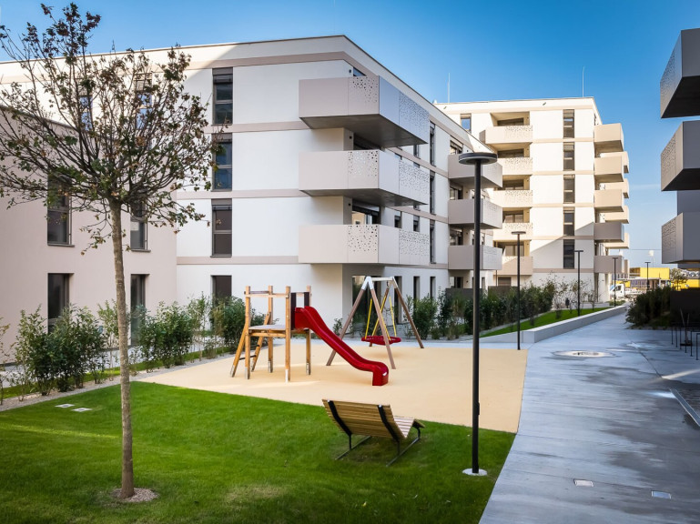Am ruhigen, grünflächigen Rand des neuen Stadtquartiers gelegen, entsteht „Gretls Garten“: Bei dem Wohnobjekt mit 118 frei finanzierten Eigentumswohnungen ist der Name Programm, denn die großzügigen Wohneinheiten verfügen alle über Freiflächen: Neben Balkonen, Loggien und Terrassen besteht auch die Möglichkeit, eine Eigentumswohnung mit einem kleinen aber feinem Eigengarten zu erwerben.