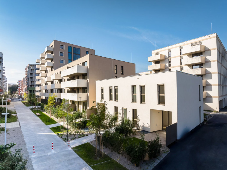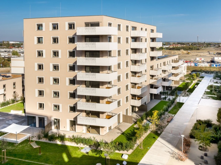 In der Donaustadt entsteht ein besonders attraktives Stadtquartier mit Wohnungen, Geschäften, Lokalen, Freiraum und zahlreichen Gemeinschafts- und Mobilitätsangeboten. Auch die Natur kommt nicht zu kurz, denn in unmittelbarer Nähe befindet sich der Badeteich Hirschstetten sowie die gleichnamigen, weitläufigen Blumengärten. Hinsichtlich der öffentlichen Anbindung gibt es zahlreiche Optionen: Die U2 (Haltestelle Hausfeldstraße) erreicht man fußläußig innerhalb von zehn Minuten. Die Haltestelle der Straßenbahn-Linie Prinzgasse ist 350 Meter entfernt; die Buslinien 85A und 95 A (Haltestelle Pirquetgasse) 150 Meter. In 300 bzw. 350 Metern Entfernung befinden sich die Buslinien 95B und 97 A (Haltestelle Zanggasse). Und wer mag, ist innerhalb von 20 Minuten in der Wiener Innenstadt.