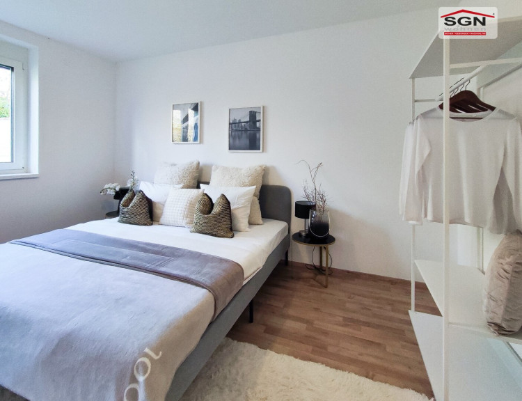 Der Wohn-Küche-Bereich ist leicht einzurichten und wird schon bald zu Ihrem Lieblingsaufenthaltsort. Die beiden weiteren Zimmer sind ebenfalls Richtung S/O orientiert und ermöglichen freien Blick in den Eigengarten.