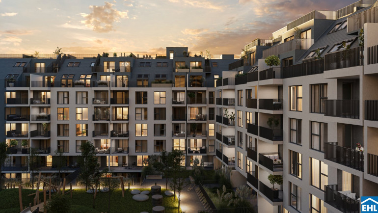 Das Herzstück des Projekts ist der knapp 1.000 m² große Innenhof, der den Bewohnern exklusiv zur Verfügung steht und u.a. zum Verweilen und Urban Gardening einlädt. Eine Ruheoase und Rückzugsort, der seinesgleichen sucht und das direkt vor Ihrer Wohnungstür.