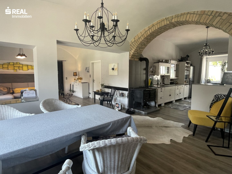 Das Haupthaus präsentiert sich nach laufenden Erneuerungsarbeiten in sehr gutem Zustand und überzeugt durch helle, offene Wohnbereiche sowie eine angenehme Raumaufteilung. Hochwertige Details und durchdachte Lösungen sorgen für ein zeitgemäßes Wohngefühl, ohne auf Charakter und Atmosphäre zu verzichten.