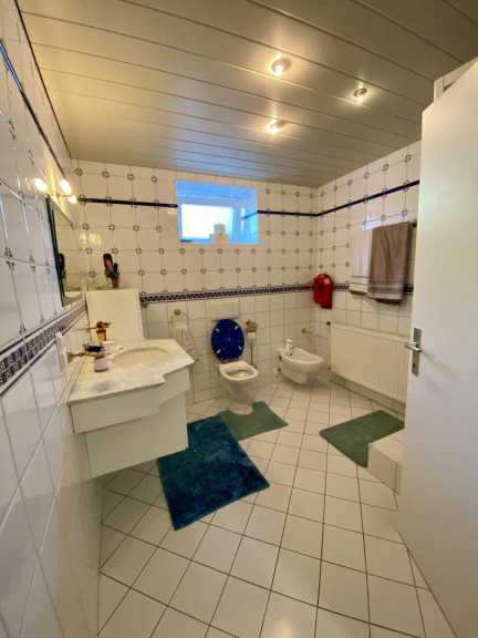 Das Haus verfügt über alle Annehmlichkeiten, die Sie sich wünschen können. Eine geräumige Garage und 4 Stellplätze bieten ausreichend Platz für Ihre Fahrzeuge. Im Inneren des Hauses gibt es insgesamt 3 WCs und 2 Bäder, so dass Sie und Ihre Familie sich nie in die Quere kommen werden. Die Bäder sind modern ausgestattet mit hochwertigen Fliesen und bieten viel Platz und Komfort.