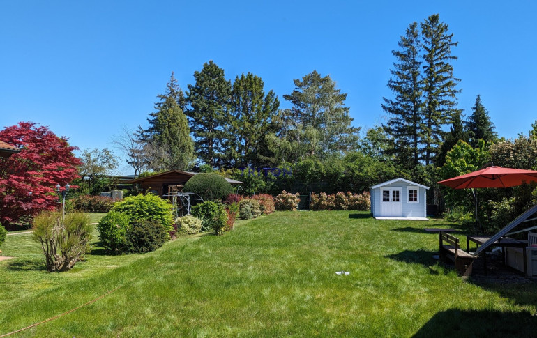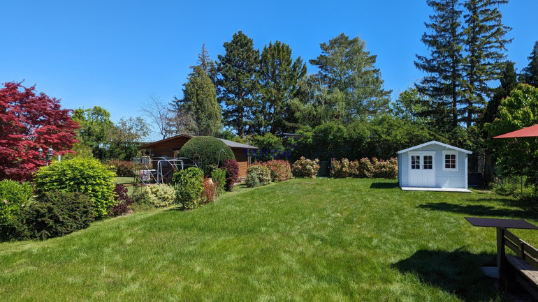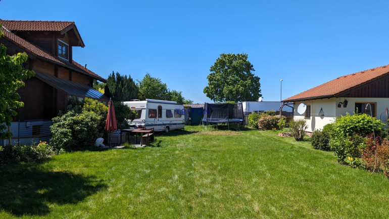 Verschiedenes Zubehör: Ein Trampolin, eine Schaukel, eine Gartendusche und weitere Zubehörteile können auf Wunsch ebenfalls übernommen werden.