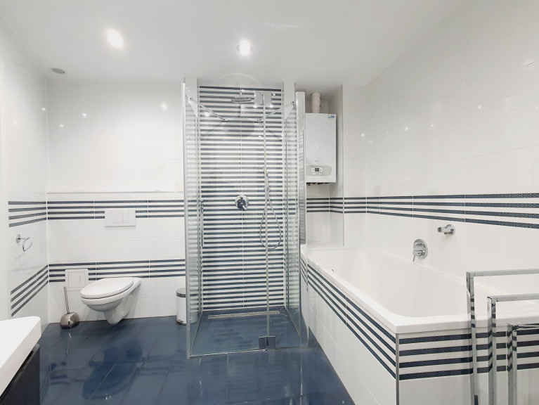 Die 12 Jahre alte Wohnung wurde sehr schön saniert und hochwertig Ausgestattet. Die Innentüren sind aus Satinglas mit Holztürstock, mit Edelstahl- Designbeschlägen, die Eingangstüre ist eine DANA Sicherheitstüre, die Dachflächenfenster sind weiße Holzfenster von VELUX, alle Wohnräume sind mit Eichenparketten ausgestattet. Das geräumige Bad mit Design-Handtuchheizkörper ist mit einem Doppel - Waschbecken und Villeroy&Boch Badewanne, sowie einer KERMI Chrom-Glasdusche ausgestattet, alle Armaturen sind von Hans GROHE, es wurden auch moderne und energiesparende LED Spots verbaut.